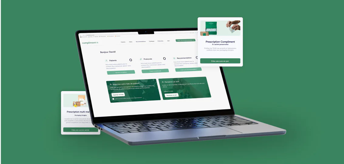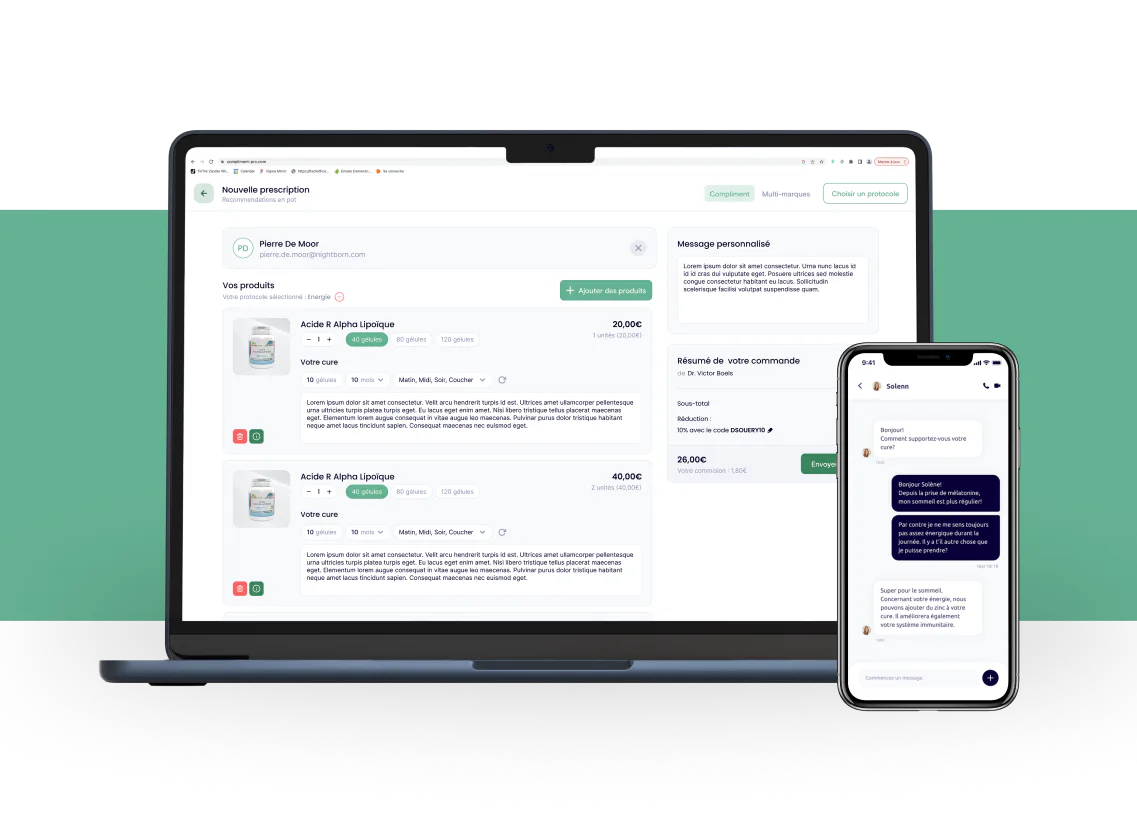Together with Compliment, the Nightborn team developed a one-stop platform for health professionals where they can access all the products they need, patients can purchase their supplements with ease & labs can sell their products to Compliment's audience through the app.