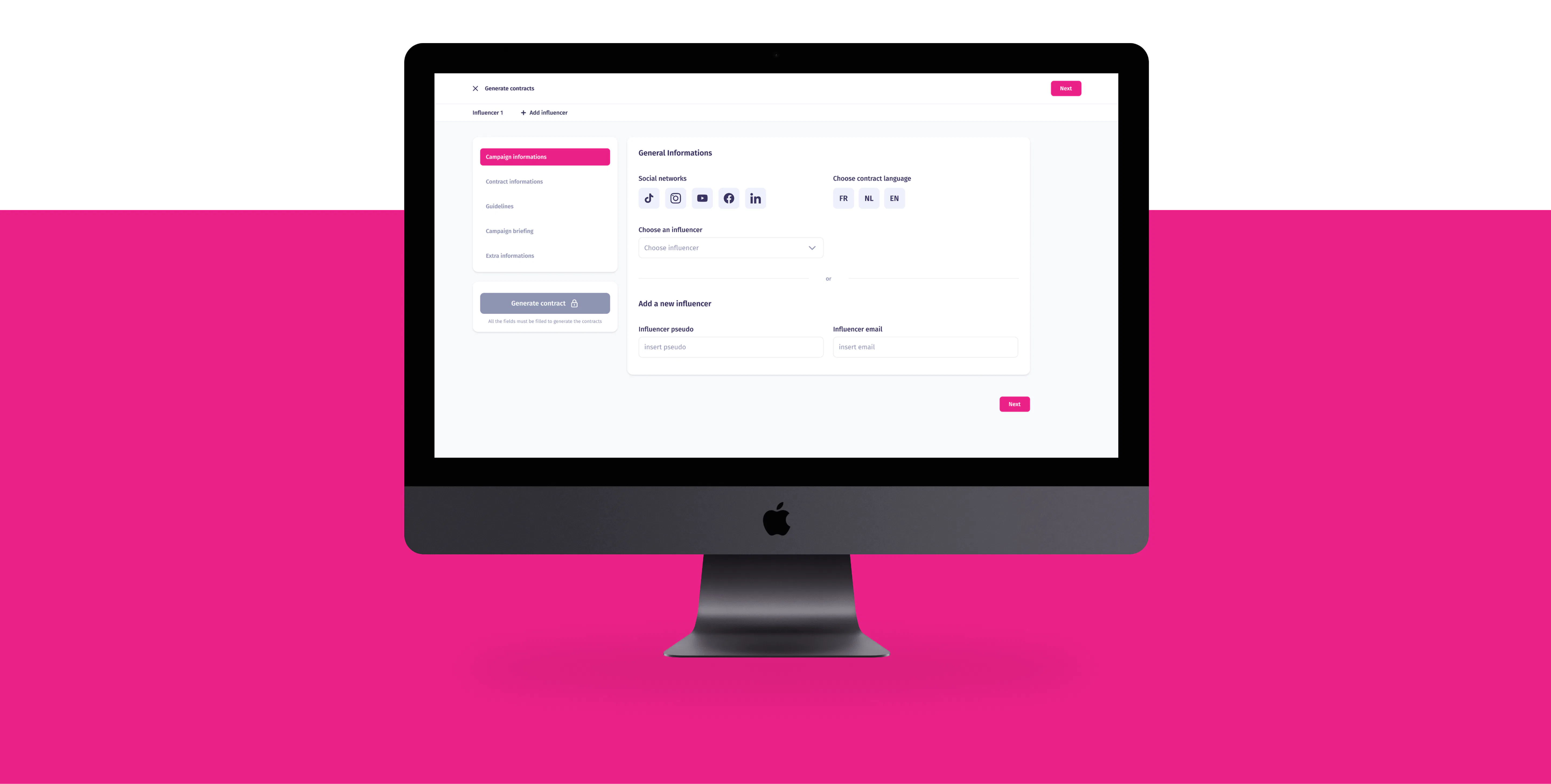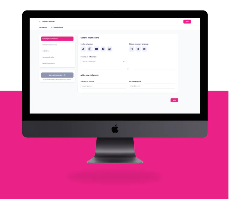 Nightborn created a web application for the Efluenz team on which they can fully manage each campaign. From automatically generating contracts to direct communication with the team, the client, or the various influencers.Â